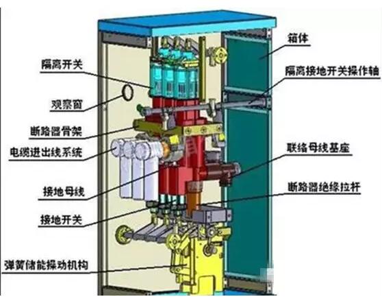 内部元器件包括:母线(汇流排)、断路器、常规继电器、综合继电保护装置、计量仪表、隔离刀、指示灯、接地刀等。