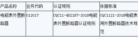 中国质量认证中心(英文缩写CQC)研发并推出了电能表外置断路器认证业务。具体业务信息如下: