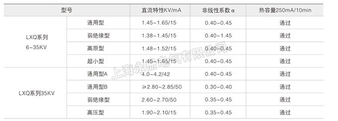 LXQ系列6-35kv消谐器主要性能参数表