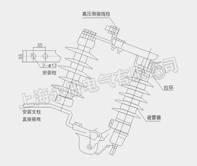 ◆ 安装使用前请检查避雷器元件与跌落式机构之间的松紧度,以保证接触良好并披卸灵活。